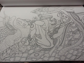 Jag har personligen inte hunnit med att färglägga något än, men det är mest för att jag inte trivs med de pennor jag har (har önskat mig nya i julklapp, så kom igen tomten). Så fort jag har nya pennor kan jag dock garantera att det kommer att bli en massa målande av. Folk och väsen i skog och rymd är en annorlunda målarbok och full av snygga bilder. Definitivt ett måste att köpa.